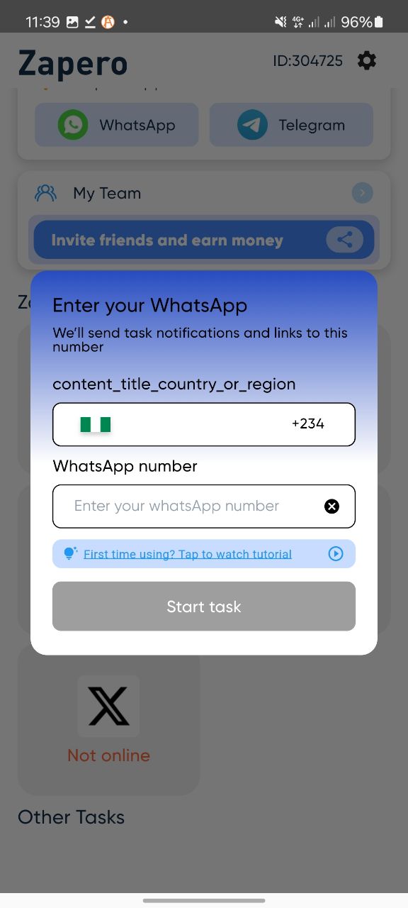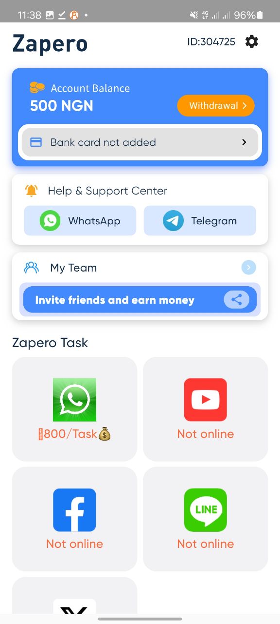 Once installed, I opened the app and logged in with the account I created earlier. That gave me access to the dashboard and available tasks.