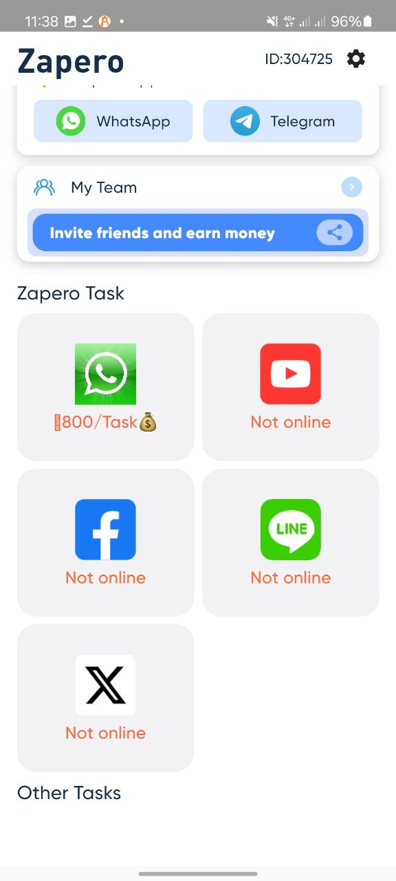 👉 Most tasks like YouTube, Facebook, and LINE were showing “Not online”