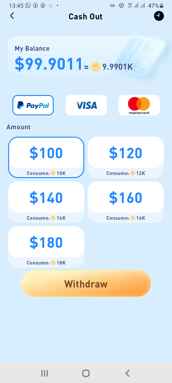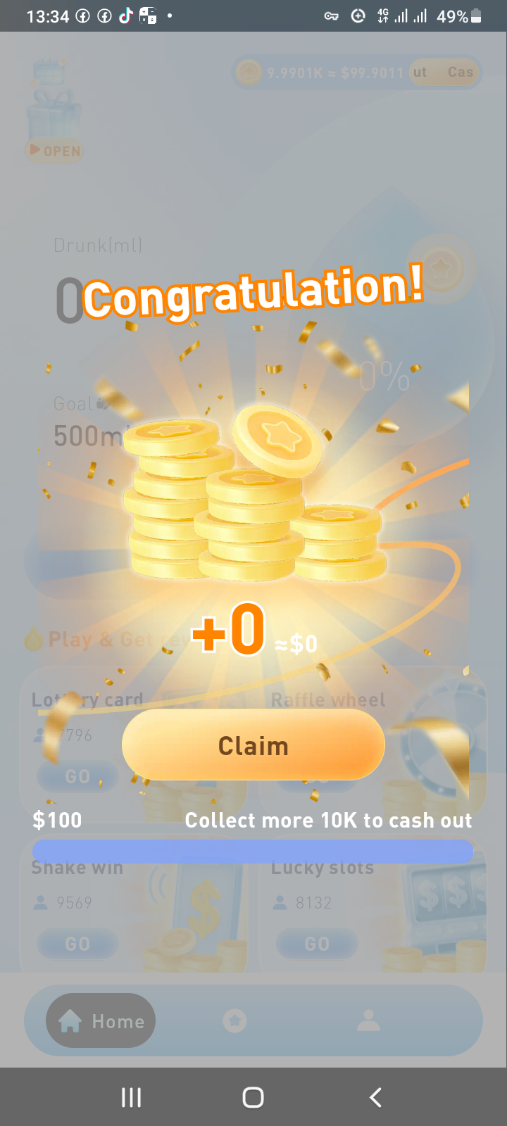 Once your coin balance reaches around 9.9901K coins (close to the withdrawal target), the app suddenly begins: