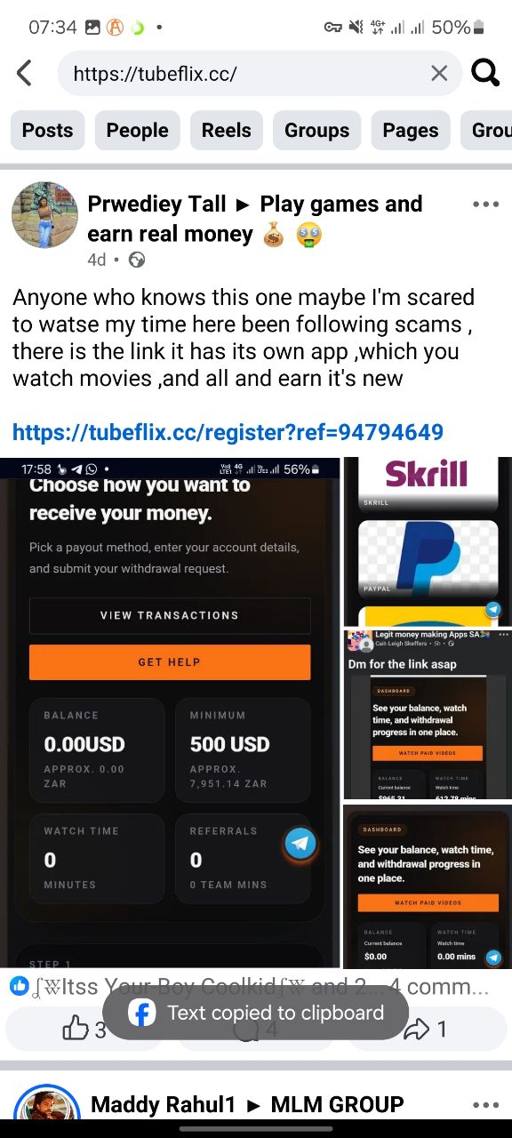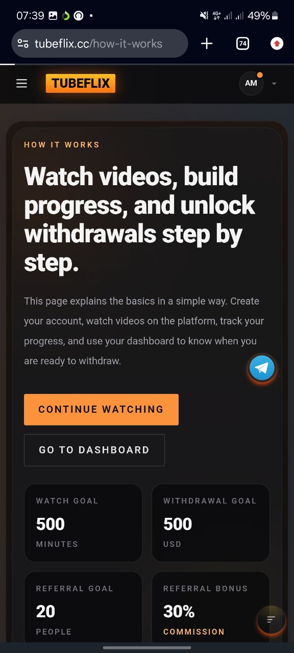 I came across TubeFlix while scrolling through Facebook groups and Telegram channels where people were sharing links and shouting things like “Don’t miss this opportunity” and “Earn $60 per hour watching videos.”